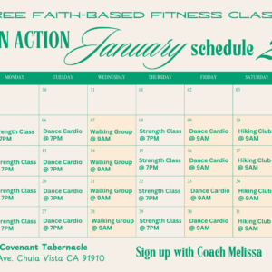 FAITH IN ACTION PROGRAM New 2026 Schedule Please reach out to Coach Melissa after any church service if you have questions. See full class schedule below!