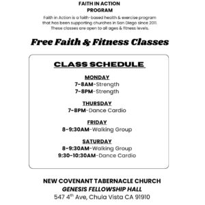 FAITH IN ACTION PROGRAM Begins: Monday September 22nd (Scheduled edited as of 11/2/25) See full class schedule below!
