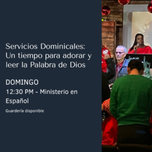 Servicios Dominicale: Un tiempo para adorar y leer la Palabra de Dios DOMINGO 12:30 PM – Ministerio en Español Guardería disponible