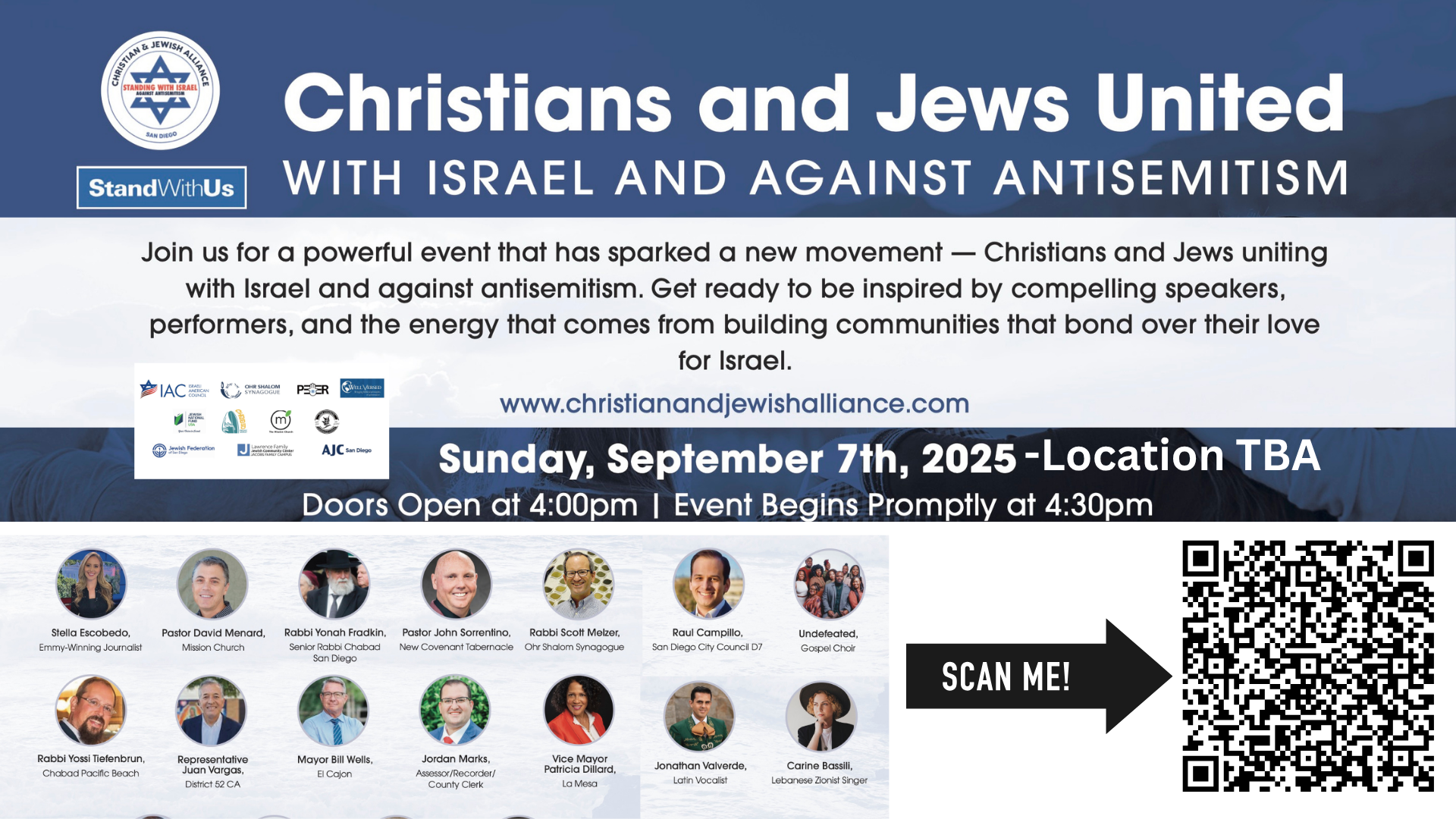 On Sunday, September 7th, in San Diego, our very own Pastor John Sorrentino will be speaking alongside other powerful voices at an event that’s sparking a movement — Christians and Jews United for Israel and Against Antisemitism.