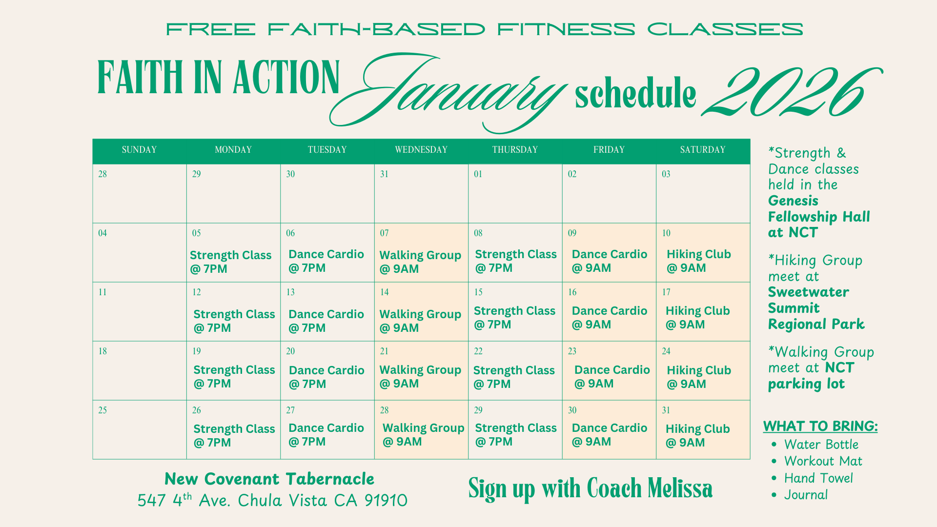 Please reach out to Coach Melissa after any church service if you have questions.