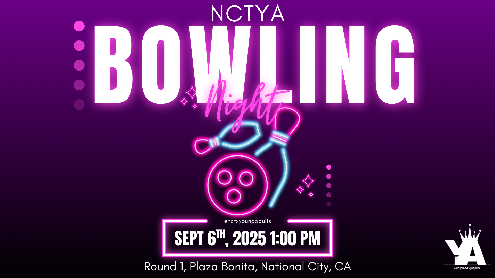 We’re heading to Round 1 in Plaza Bonita for a day of bowling and fun! We will meet at 1:00pm. Come join us for Bowling, Arcade, and more! Please see Brother Jeremiah and Areyona Hood or Sister Alana for more information.