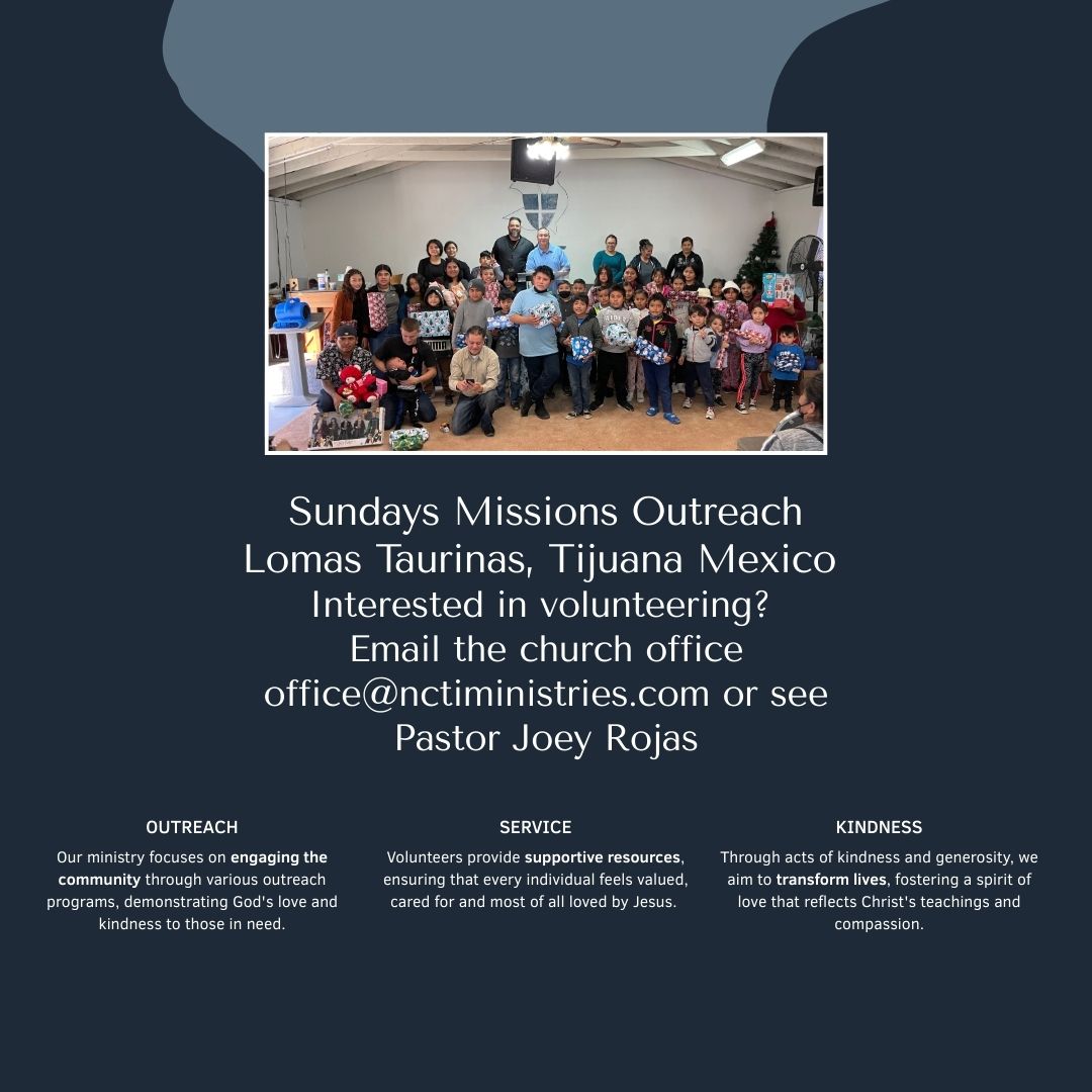 Please contact Pastor Joey Rojas or the church office @ office@nctministries.com if you are interested in volunteering