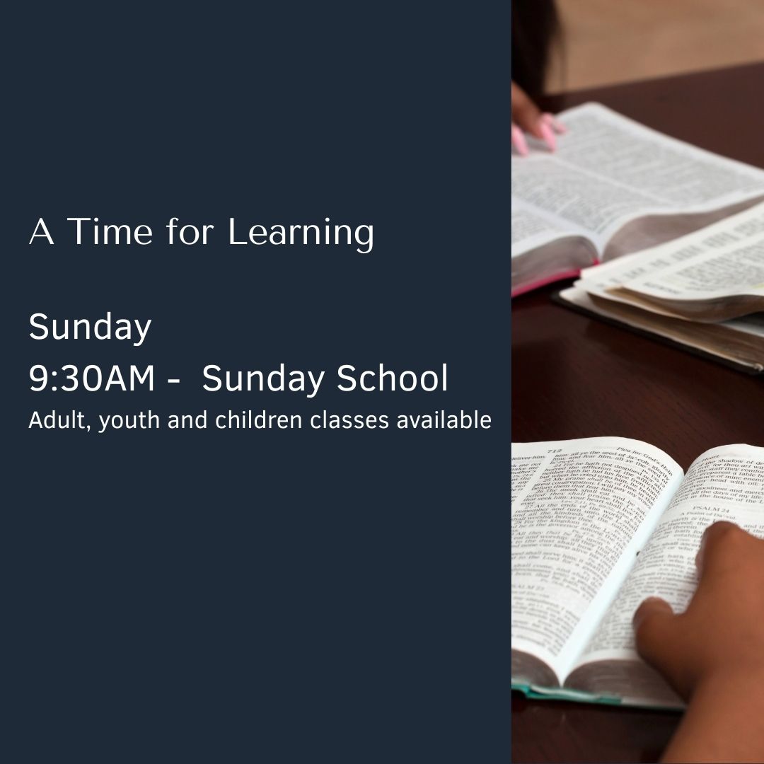 Sunday School Sunday 9:30AM – Sunday School Adult, youth and children classes available + Add to Google Calendar + iCal / Outlook export Date Feb 15 2026 - Feb 15 2027 Ongoing... Time 9:30 am - 10:15 am Share this event